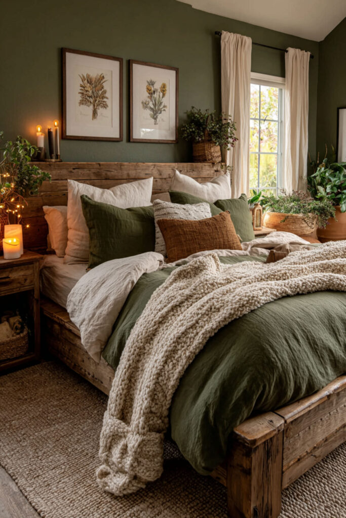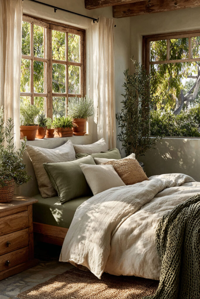 If you’re in that same season of life — kids grown, garden thriving, and a quiet new freedom settling in — your bedroom should feel like it matches who you are right now. Not who you were ten years ago. And for women who love spending time outdoors and crave that grounded, natural calm, olive green paired with soft linen textures is one of the most beautiful combinations out there.