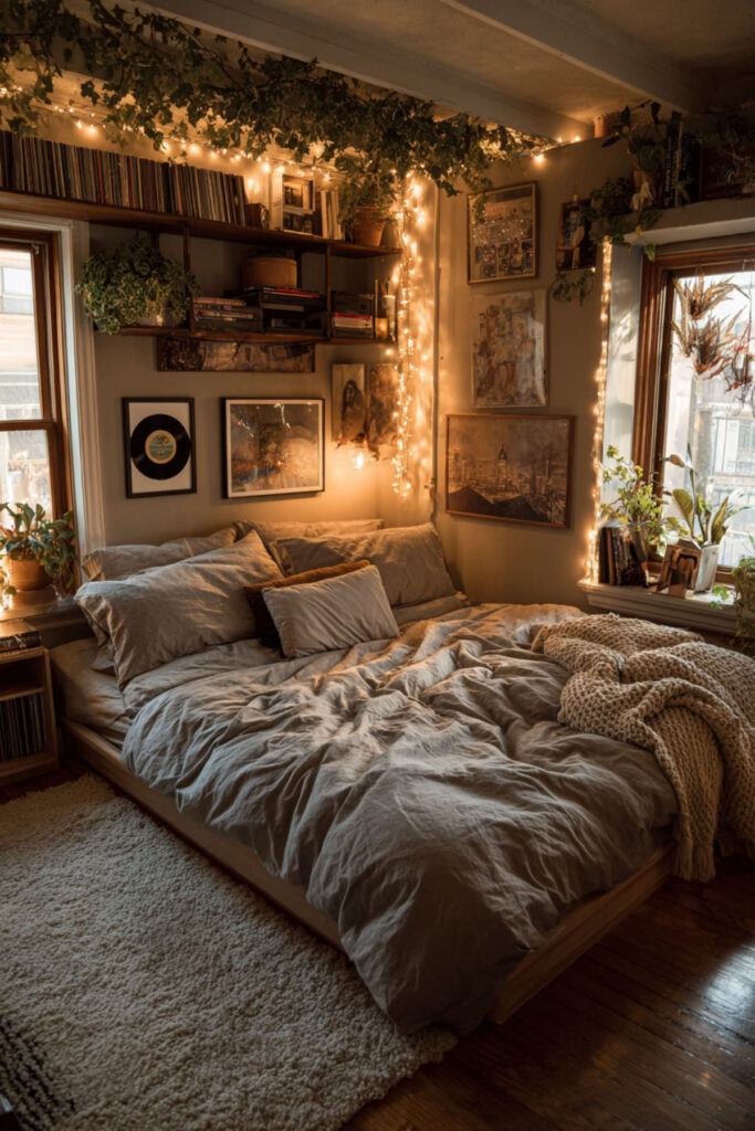 Okay, hear me out on this one — a weathered garden bench, brought indoors, placed right at the foot of your bed. Some people might think it’s too quirky, but I think it’s brilliant. It connects the garden you love to the room where you rest, and it’s incredibly practical for laying out clothes or stacking books. I recommend a reclaimed wood bench with a natural, unfinished look. You can drape a linen throw over it and add a small potted fern on one end. It gives the room an earthy decor quality that feels lived-in and personal, not staged. This is one of those ideas that would fit right into a bed and breakfast somewhere in Savannah — warm, charming, and a little unexpected.