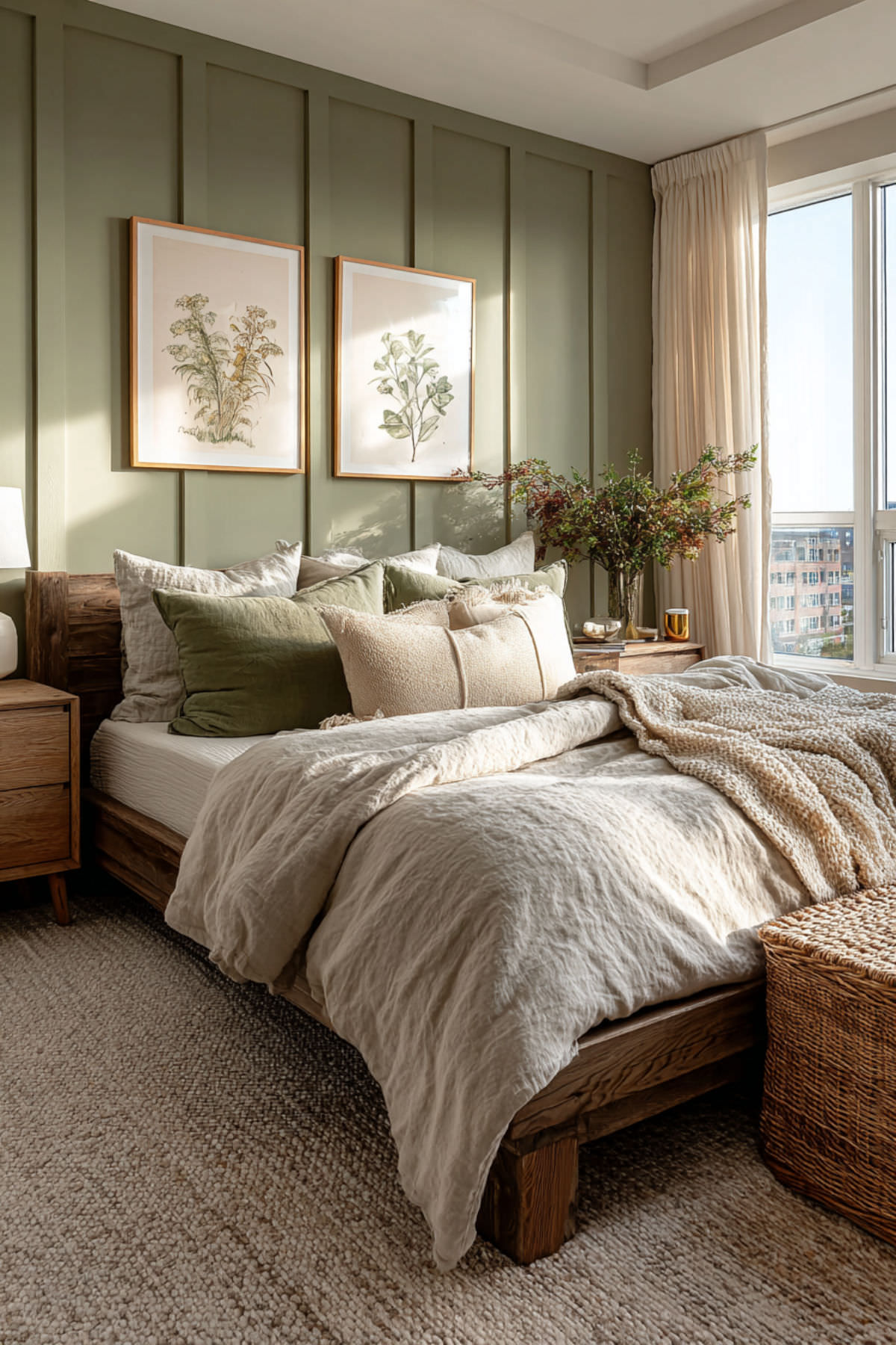 An Olive Green Accent Wall That Feels Like a Garden at Dusk