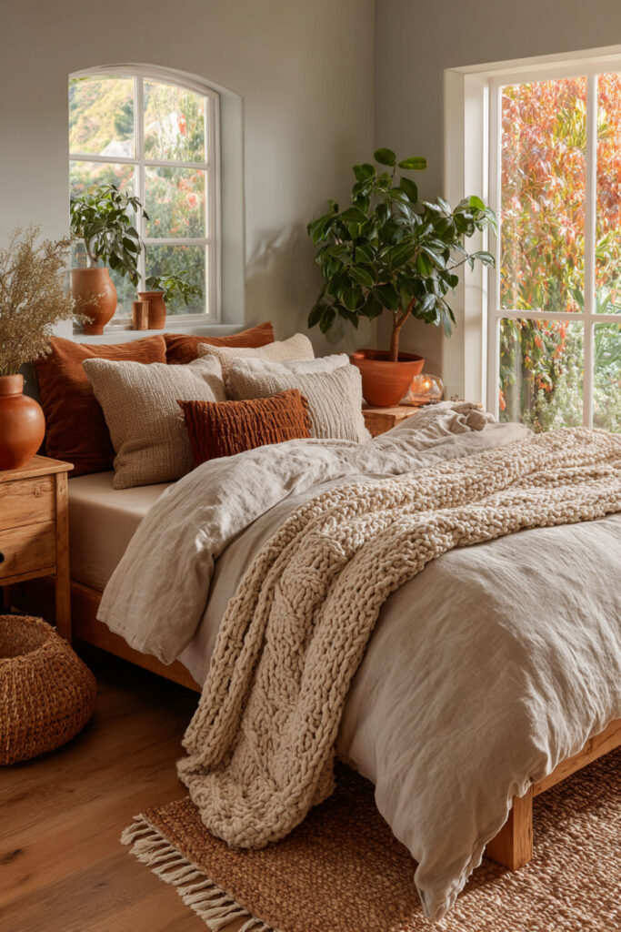There is a difference between a room that looks like nature and a room that feels like it. Most earthy bedrooms stop at the first version — a green wall, a terracotta pot, a woven basket, done. It photographs well. It checks the Pinterest boxes. But it doesn’t do the thing an organic sanctuary actually needs to do, which is make your nervous system slow down the moment you walk through the door. A room that truly feels organic isn’t about surface-level nature references. It’s about materials that age. Colors that come from the earth rather than approximate it. Textures you can feel without touching. And a palette — olive green and terracotta — that carries the warmth, weight, and emotional groundedness of the actual natural world.
