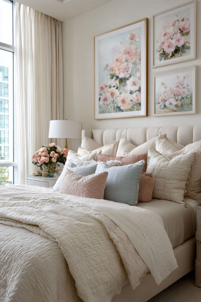 I strongly suggest this type of pastel abstract print set… they add color and sophistication without permanent commitment. This approach lets you experiment with different pastel combinations until you find your perfect palette.