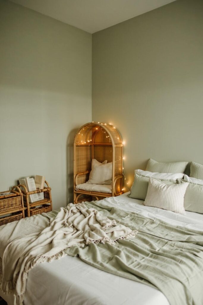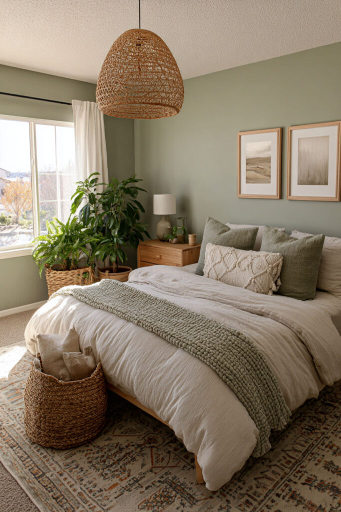 Next up, let’s talk about bringing some free-spirited vibes into the bedtime routine. A sage green boho bedroom doesn’t mean going full hippie—it’s more about layering textures and embracing a relaxed vibe. Think macramé wall hangings against sage walls, maybe a teepee in the corner for reading time.