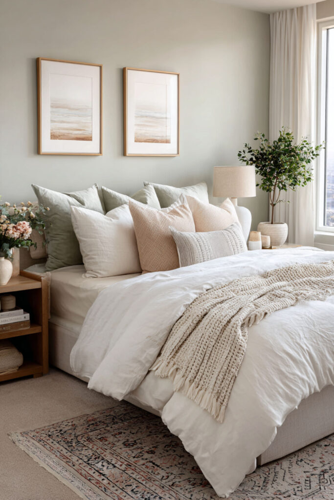This combination might sound like a herb garden, but trust me—sage and lavender together create pure bedtime magic. The cool undertones work together to lower heart rates and encourage drowsiness (science!). Layer sage walls with lavender bedding, or vice versa.