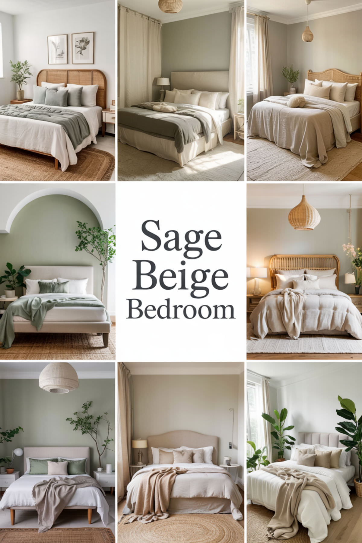 If painting walls sage feels too bold, reverse it: warm beige walls with sage green accents through bedding, curtains, and accessories.