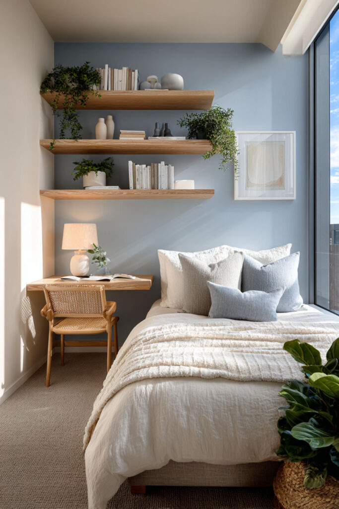 Use every inch wisely: under-bed storage for out-of-season clothes, wall-mounted desk accessories, hanging organizers inside closet doors.