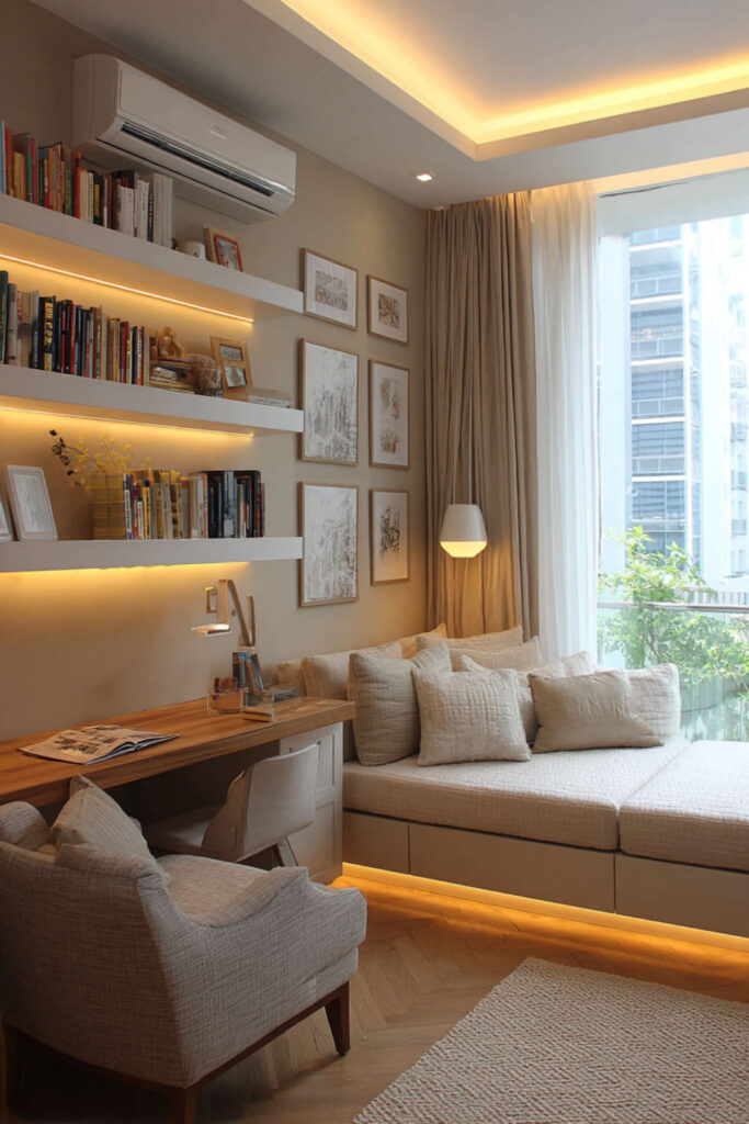 Even in tiny rooms, you can create effective study spaces. Try a wall-mounted fold-down desk, use vertical space for supply storage, or convert a closet into a study nook. This approach proves space limitations don’t limit potential.