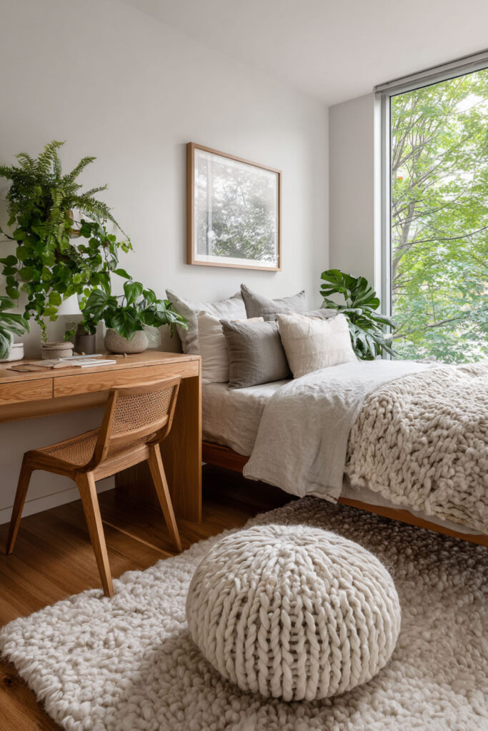 Borrow from Nordic design: cozy textiles, natural materials, and plenty of white space. Add a small plant they’re responsible for – teaches care while improving air quality. This approach to wellness-focused design supports both physical and mental health.