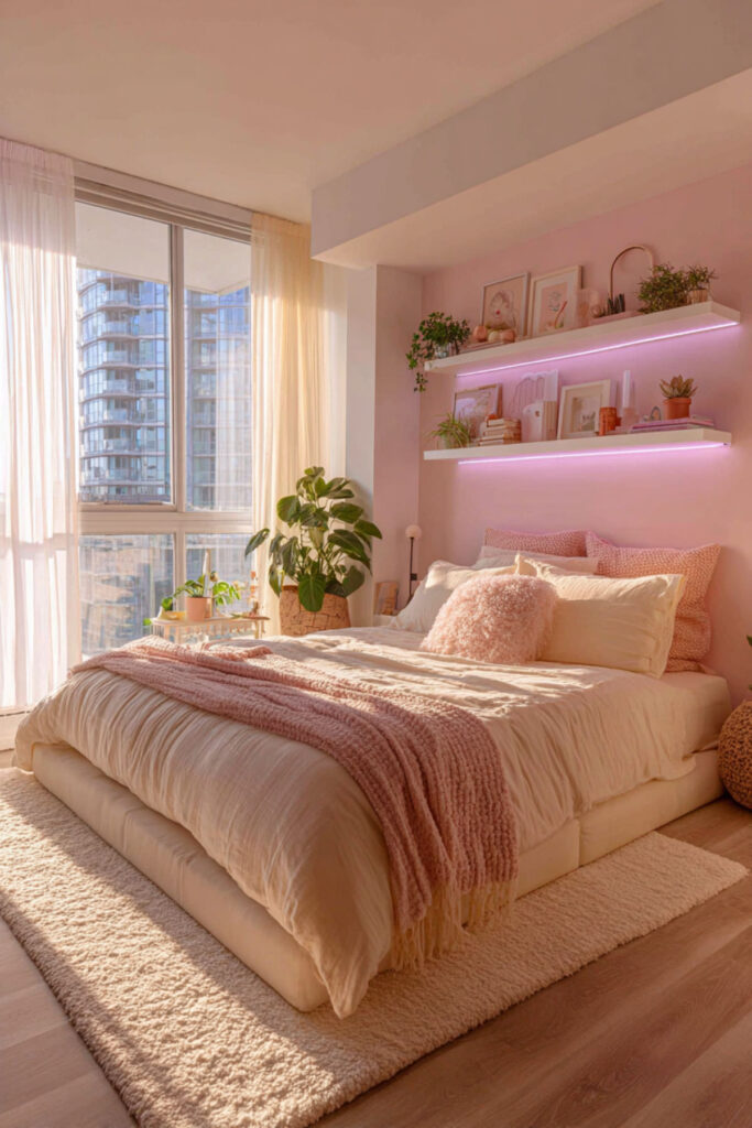 The trick is placement—don’t just stick them around your headboard and call it a day. Try running them behind your mirror, under floating shelves, or even around window frames. I really recommend getting the ones with the app control because being able to dim them from your bed hits different when you’re trying to create that perfect golden hour lighting for photos. Some people think it’s too much, but I think LED strip light placement is what separates amateur room setups from spaces that actually photograph well.