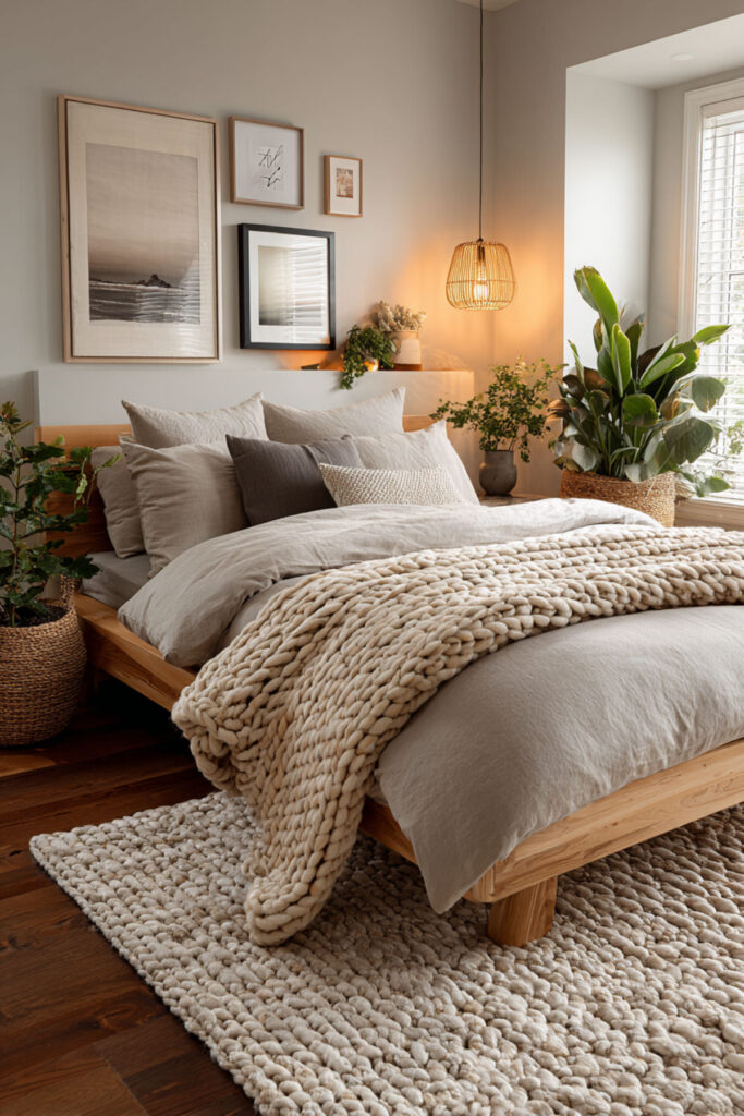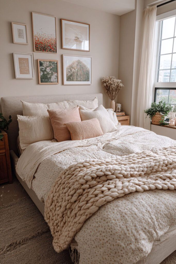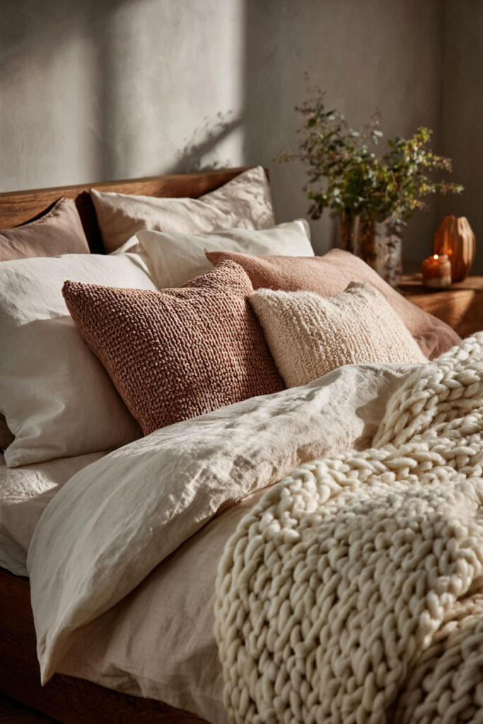 Mix linen sheets with chunky knit throws, add some velvet or faux fur pillows, and maybe throw in a vintage quilt for good measure. The key is choosing pieces in your color palette but varying the textures so everything doesn’t blend together. I really recommend how different fabrics catch light differently in photos—it adds depth and interest that flat, matchy-matchy bedding just can’t achieve. Plus, having all those different textures makes your bed the perfect spot for those cozy, wrapped-in-blankets photos that always perform well.