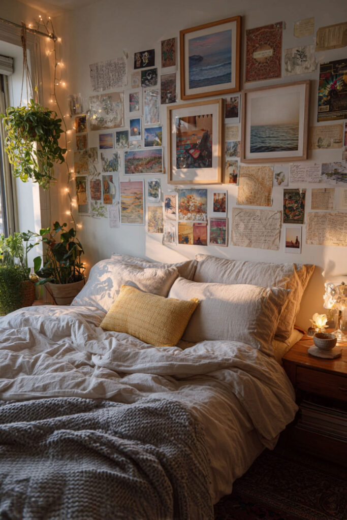 Mix photos of your friends, concert tickets, magazine cutouts, and maybe some of your own artwork or poetry. There’s this idea where people include handwritten poetry or quotes that mean something to them, and I think it’s one of the most personal touches you can add. The key is varying the sizes and not overthinking the placement. I strongly recommend the gallery wall frame set, it gives you just enough structure to get started without making things feel too rigid. Once it’s up, you can build around it with your own collected pieces. Think of it as your visual diary, unfolding right above your bed or desk.
