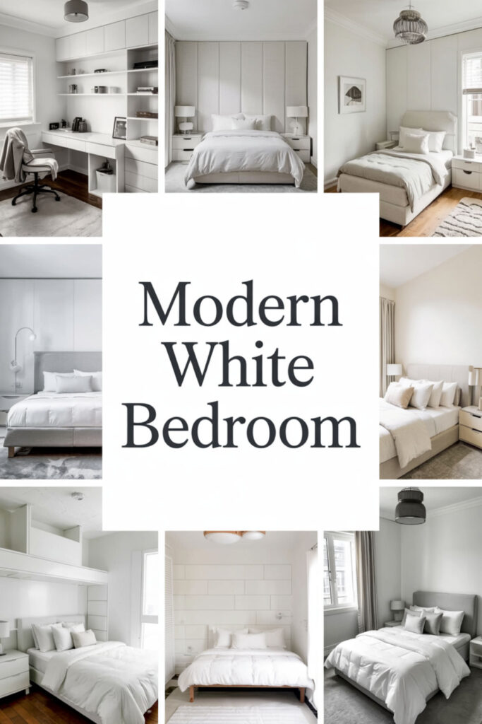 Create a modern white bedroom with clean lines that support mental clarity. You can choose simple white furniture with minimal hardware, platform beds without fussy details, and geometric white storage. Clean lines against warm white walls reduce mental clutter.