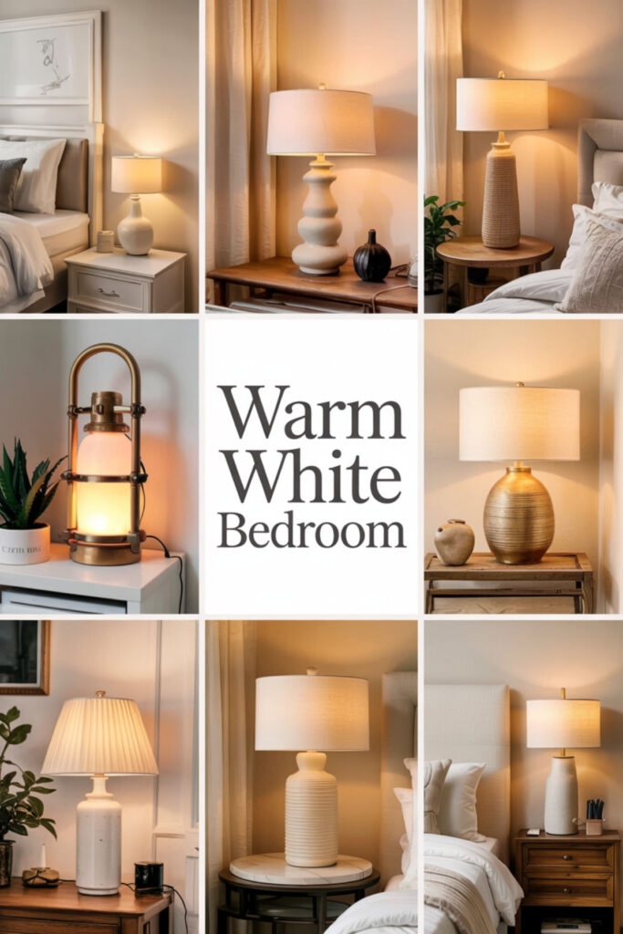 Select white bedside lamps that provide warm illumination supporting evening focus. How about ceramic white lamps with warm-toned LED bulbs that complement your warm white walls. Proper lighting against white prevents eye strain during reading. White lamp bases disappear visually, reducing bedside clutter.