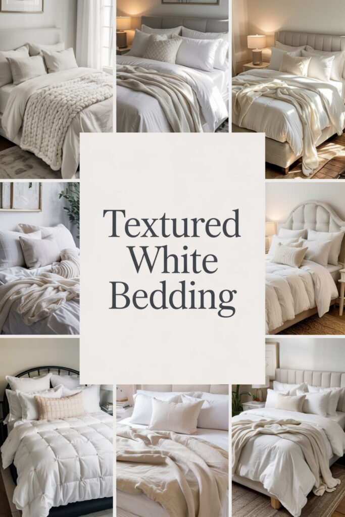 Layer a white comforter bedroom with different white textures for sensory calm. Consider combining smooth cotton sheets, waffle-weave blankets, and plush white pillows. Various white textures provide sensory input without visual chaos.