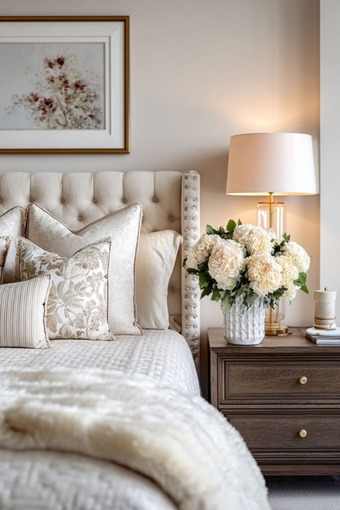 Select white headboard ideas that create calming anchor points. Choose an upholstered white headboard with subtle tufting, providing visual interest without busyness. The soft headboard supports reading posture and quiet activities. White headboards make beds appear larger and more inviting. The anchor point helps with spatial orientation.