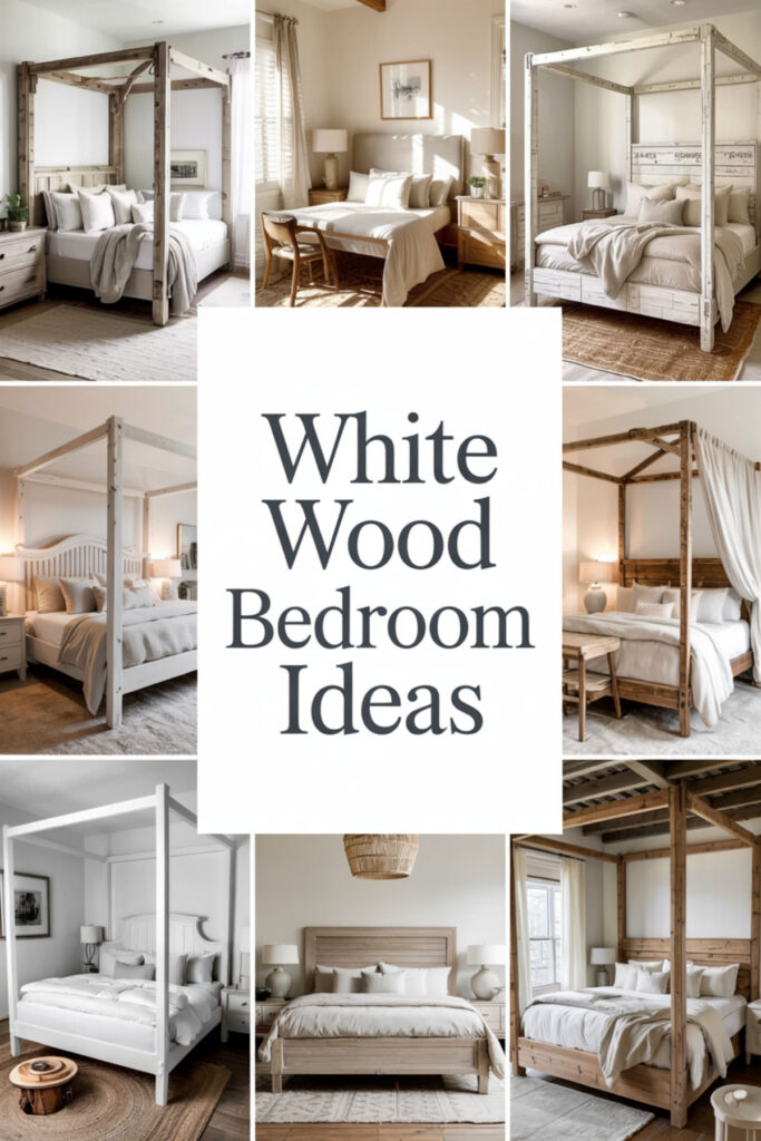 Incorporate white wooden bed frame bedroom ideas for natural warmth within white schemes. Consider selecting a simple white-painted wood frame that adds texture without heaviness. Wood grain visible through white paint adds organic interest. The natural material grounds the white palette. Simple frames support focus by eliminating visual distractions.