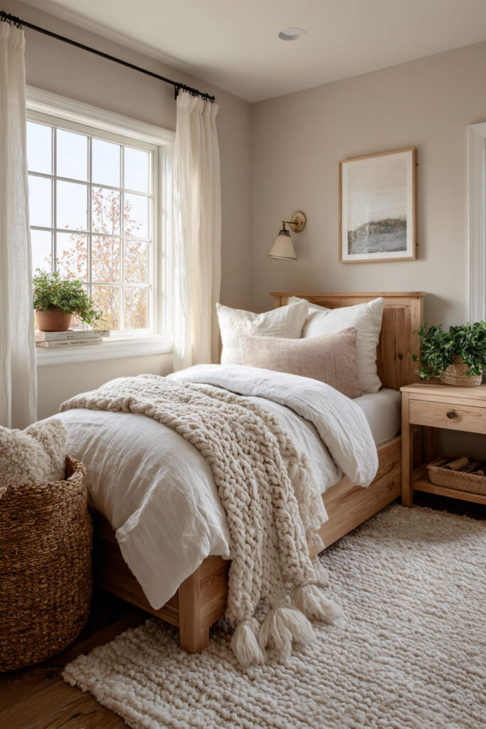 The layering teaches self-regulation through texture choice. All-white bedding simplifies morning bed-making, building routine confidence. I really recommend this textural approach. Would you layer whites for sensory support? The bedding variety can improve sleep quality and morning independence.